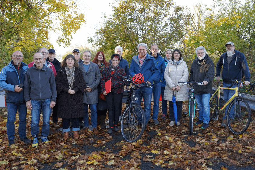 Laudenbach, 06. November 2025 – Viele interessierte Bürgerinnen und Bürger aus Laudenbach und sogar ein Vertreter der SPD Heppenheim kamen bei schönstem Herbstwetter zum Vor-Ort-Termin am Laudenbacher Kopf der ehemaligen Brücke zwischen Laudenbach und Heppenheim zusammen. Nachdem diese 2022 abgerissen wurde, besteht keine direkte Radwegverbindung mehr zwischen den Nachbarkommunen, die sich trotz Bundesländergrenze nahe stehen.