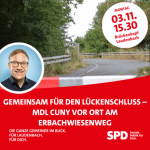 Die Wiederherstellung der Bahnbrücke zwischen Laudenbach und Heppenheim am Erbachwiesenweg zumindest für Radfahrer und Fußgänger ist für die SPD-Gemeinderatsfraktion ein zentrales Anliegen. Sie hat deshalb nach dem Abriss durch die Stadt Heppenheim Unterschriften für eine Petition initiiert und zuletzt im Sommer im Rahmen des „Stadtradelns“ gemeinsam mit den Heppenheimer Parteifreunden die Forderung nach einem Lückenschluss bekräftigt.